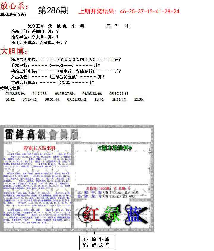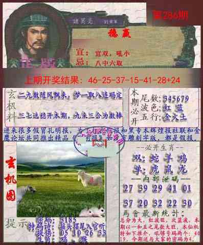 286期:〖六合战将〗🚴三组平特③连肖🚴精准数据实力把控