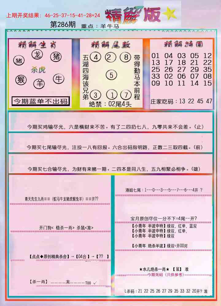 286期:五肖[龙猴狗鼠马] 286期:五尾8-2-0-6-7
